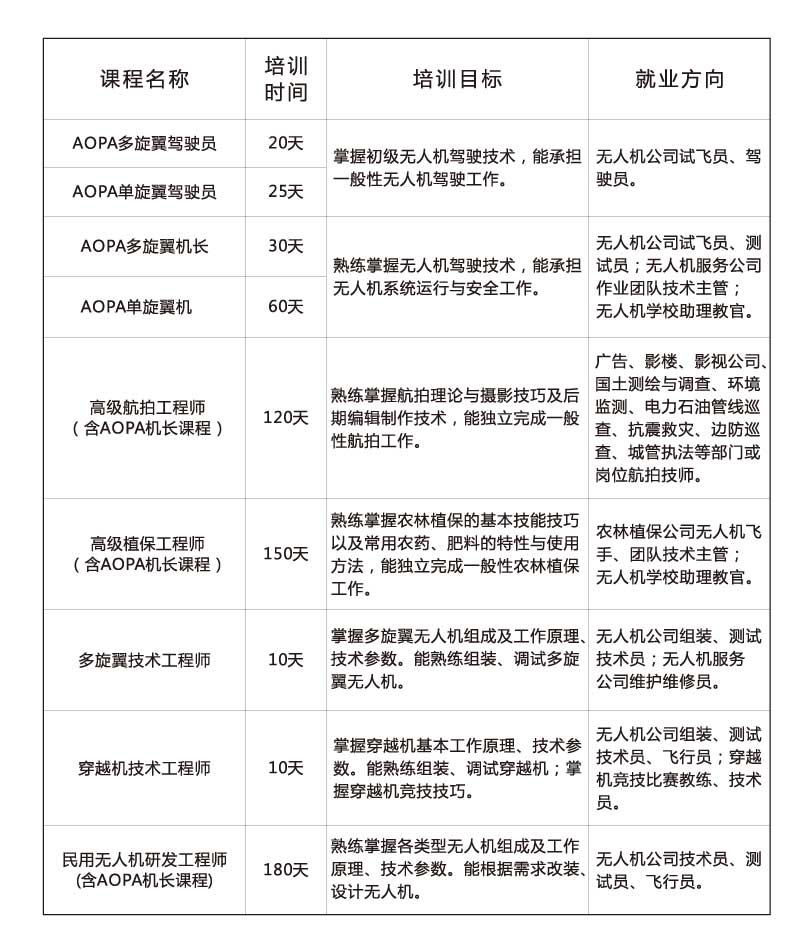 AOPA培训课程一览表